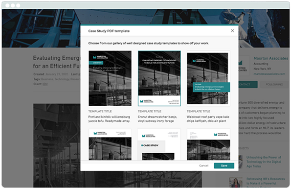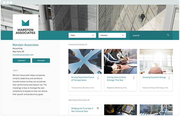 Relevant case studies of your firm’s work are the best way to attract the attention of potential new clients, but until now creating and managing case studies has been labor-intensive and time-consuming. Workfolio Case Studies allows anyone to quickly build case studies that reveal results to open doors and close deals like never before.